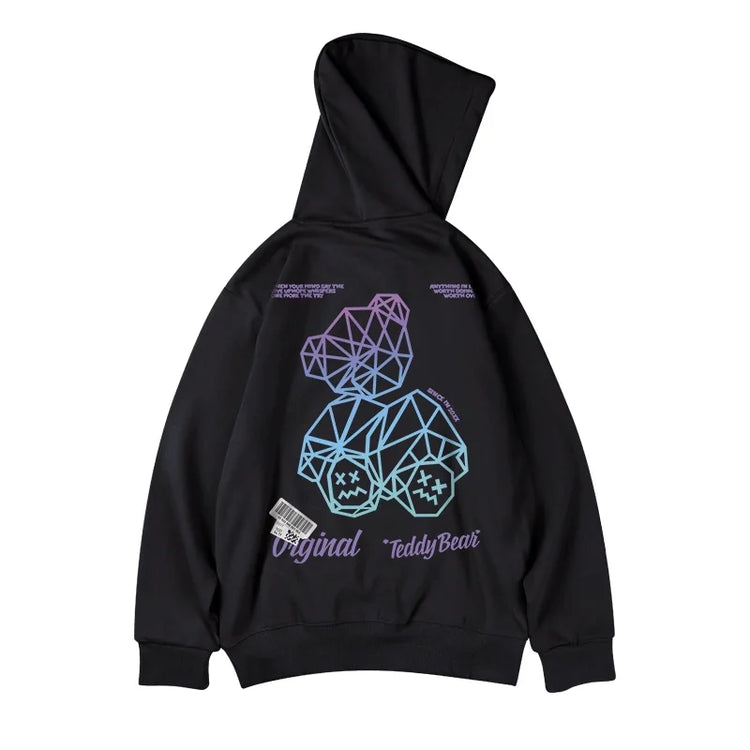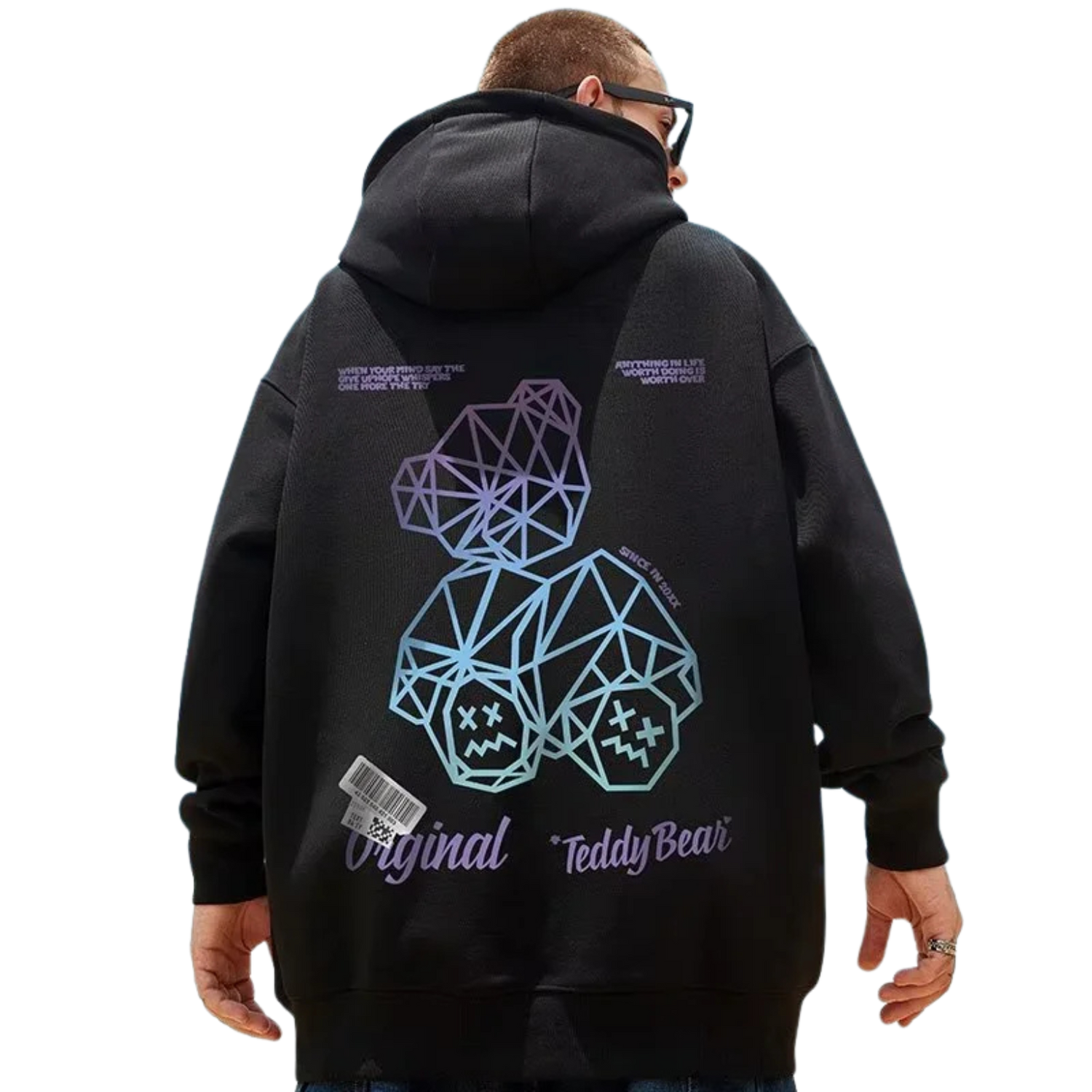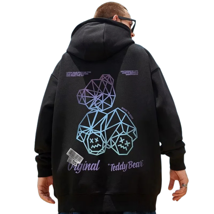 אם אתם מחפשים פריט שמשלב אווירת היפ־הופ אמריקאית עם מראה ייחודי, אין ספק שזה בדיוק מה שאתם צריכים. הדוב הגאומטרי בגב מוסיף טאץ’ מרענן של צבע וצורה, והגזרה הרחבה (מ־M ועד 8XL!) מבטיחה שתרגישו בנוח בכל רגע.
