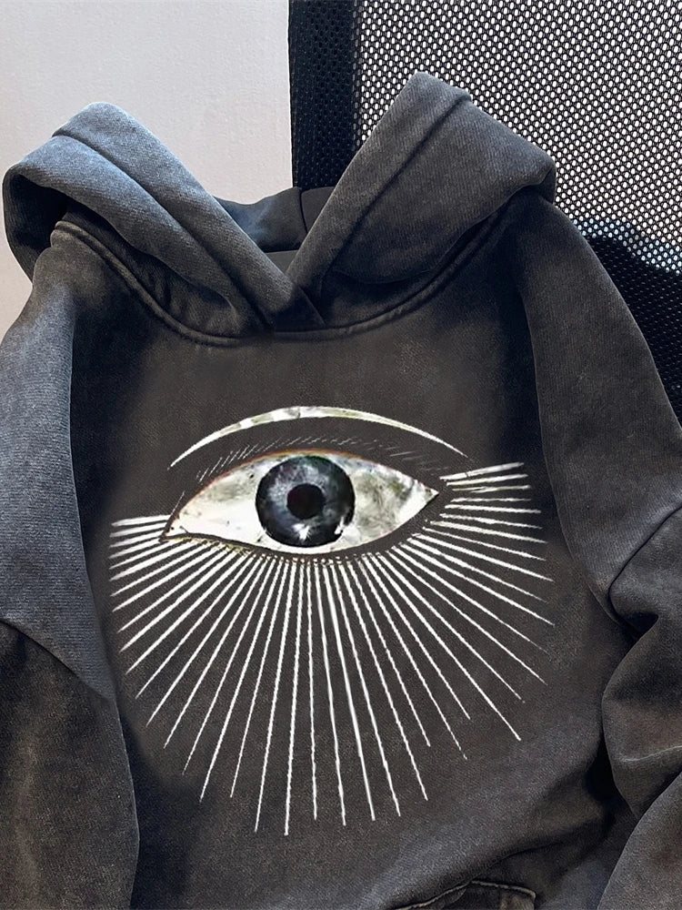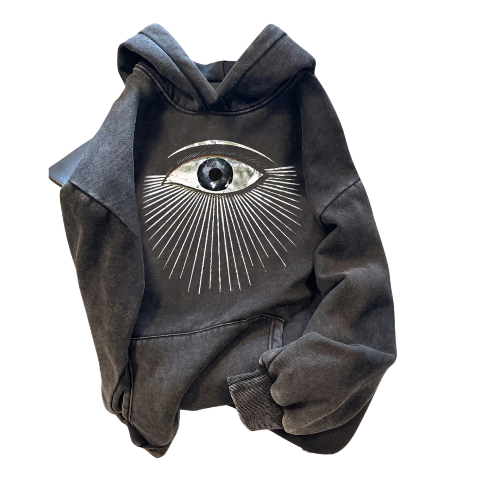 סגנון גותי ואופנת רחוב: השילוב בין הדפס עין מסתורי לעיצוב השטיפה האמריקאית יוצר פריט שמושך תשומת לב בכל מקום.