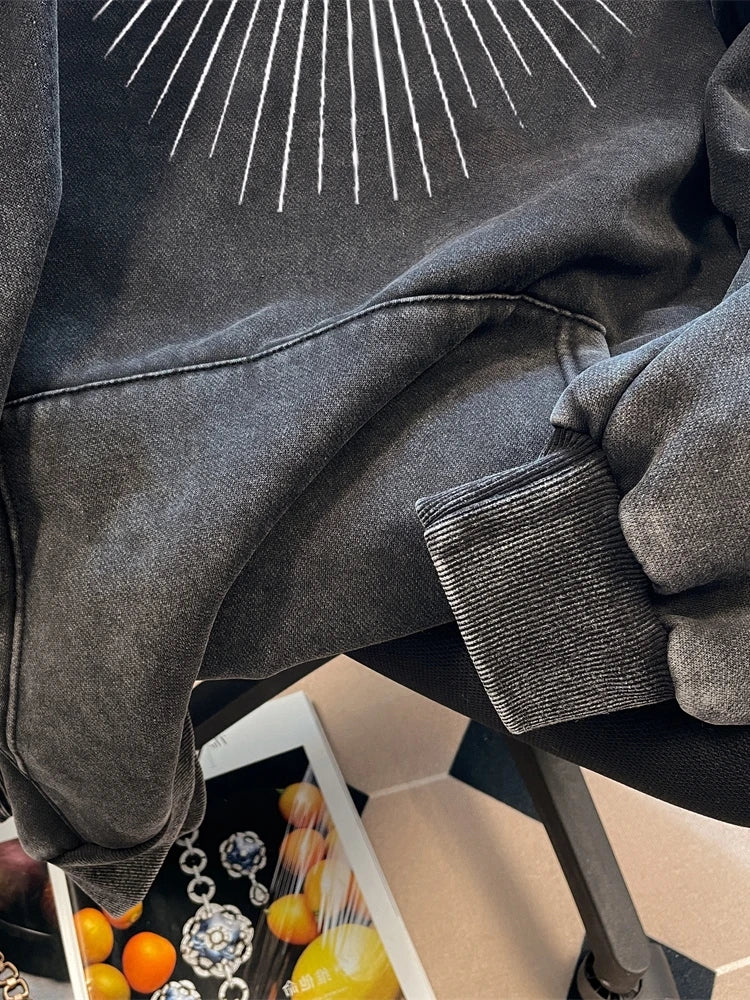 אם אתם מחפשים פריט אופנה ייחודי שמשלב וייב רחוב עם טאץ’ גותי, הסווטשירט הזה הוא בדיוק מה שאתם צריכים. ההדפס הדרמטי של העין בחזית מעניק אווירה מסתורית, והשטיפה האמריקאית (Old Washed) יוצרת מראה וינטג’ מגניב שלא רואים בכל מקום.