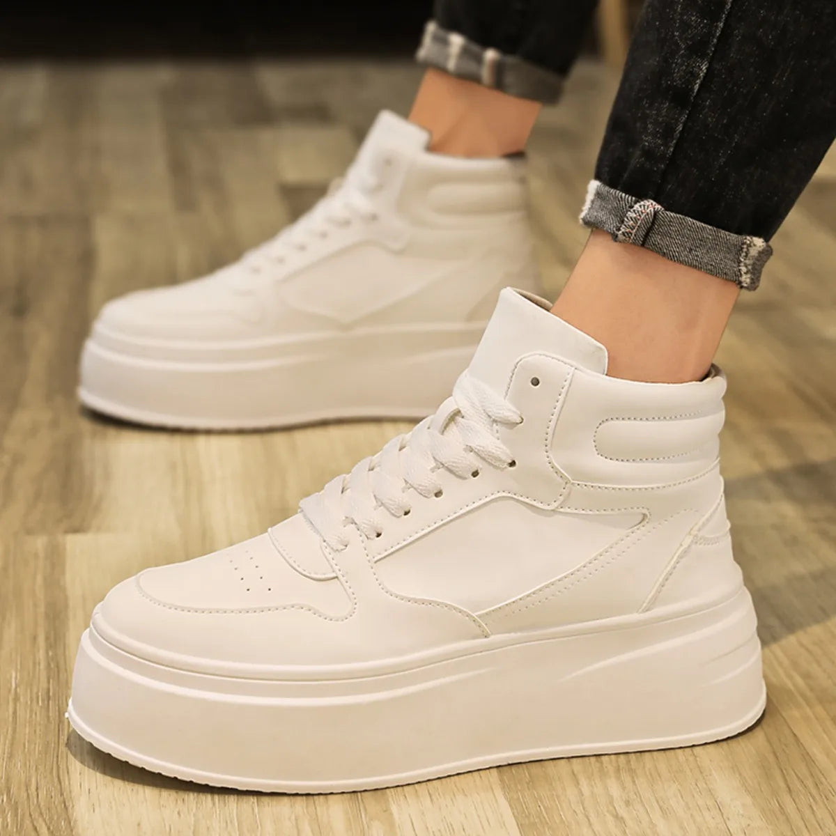 נעלי ספורט גבוהות לגברים עם פלטפורמה - נעלי ספורט עבות לחוץ, קז'ואל